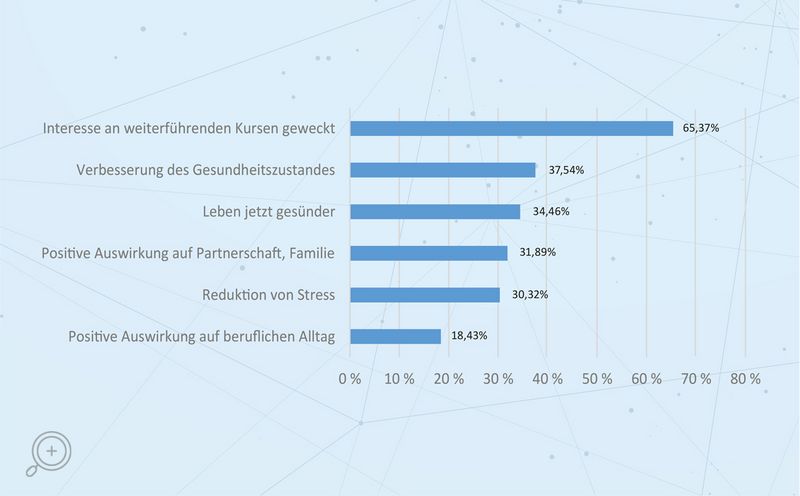 Erneut bestätigt sich der Trend, dass durch die Aktivwoche der Grundstein für eine höhere Motivation zur Nutzung weiterführender Präventionsangebote aber auch zur Veränderung des eigenen Gesundheitsverhaltens gelegt wird. » Hier geht es zu den Ergebnissen der Effektmessung 2022 (PDF, 1,5 MB)Wir haben die wichtigsten Ergebnisse für das Jahr 2022 zusammengefasst.